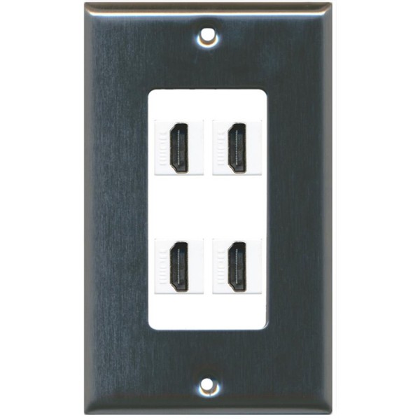 RiteAV - 4 Port HDMI 2.0 Decorative Wall Plate (Stainless Steel & White)