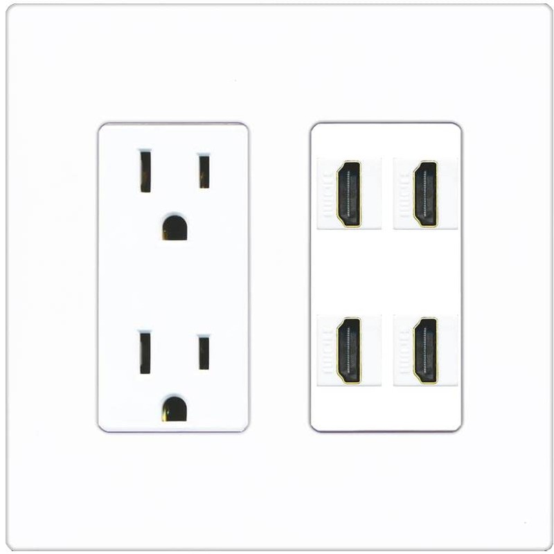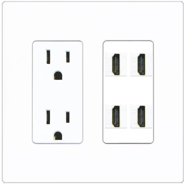 RiteAV 4 Port HDMI Wall Plate - Outlet [Screwless White]