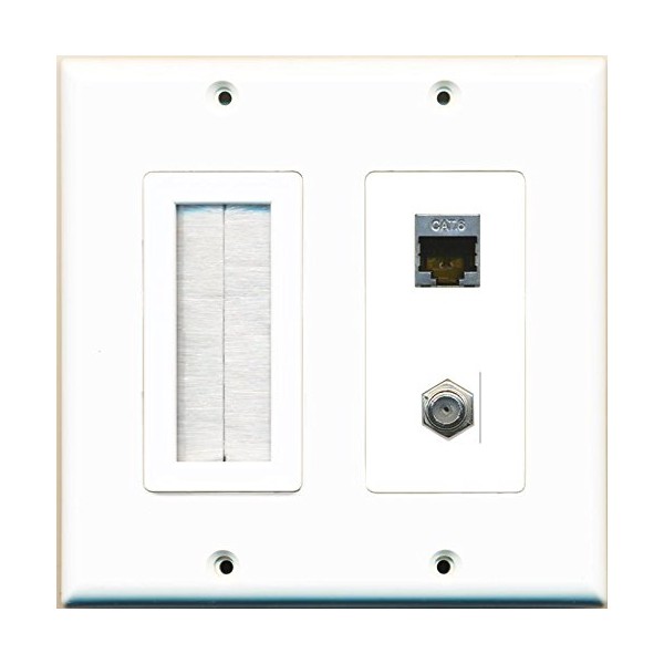 RiteAV Brush Coax Shielded Cat6 Wall Plate White