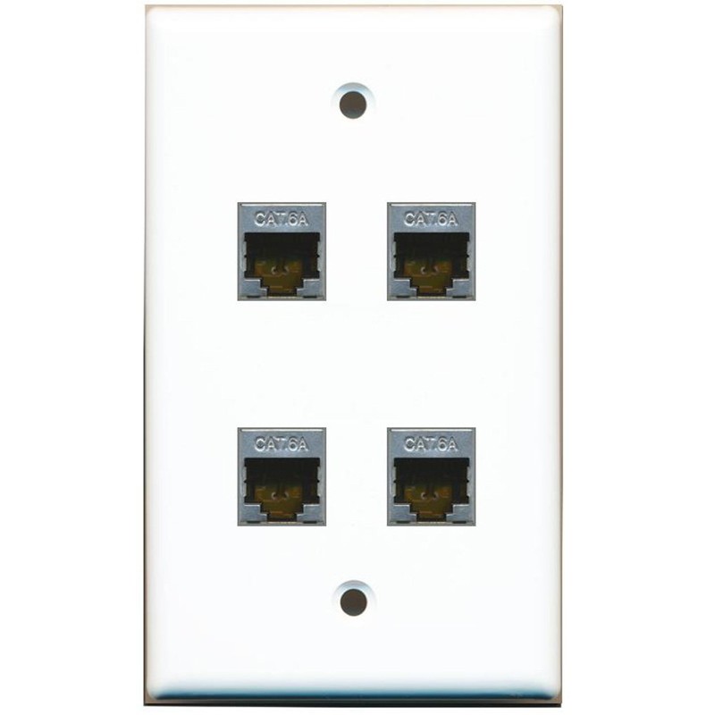 RiteAV CAT 6A 4 Port Shielded Cat6a Wall Plate 1 Gang - White