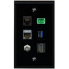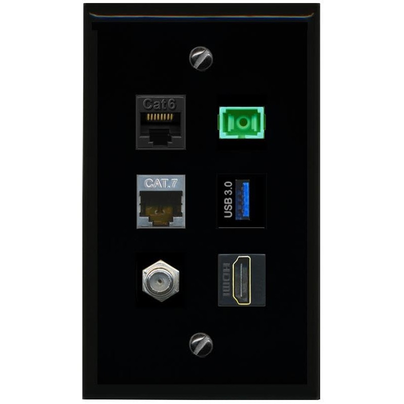 RiteAV CAT6 CAT7 Coax HDMI SC APC Simplex Fiber USB 3 Flat/Solid Wall Plate [Black]