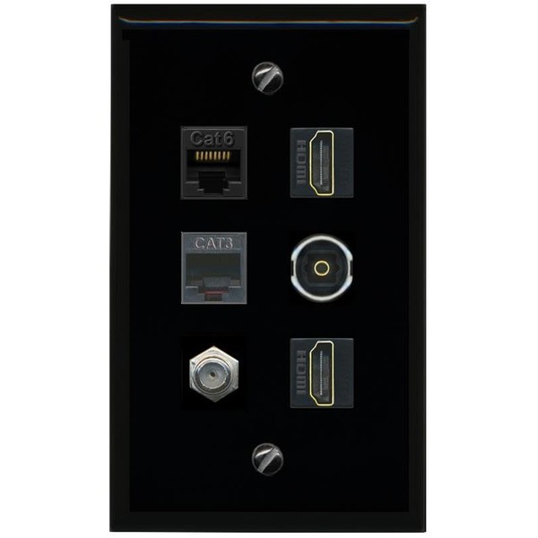 RiteAV CAT6 Coax 2 HDMI Phone TOSLINK Flat/Solid Wall Plate [Black]