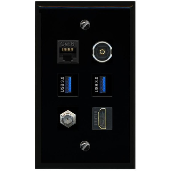 RiteAV CAT6 Coax HDMI TOSLINK 2 USB 3 Flat/Solid Wall Plate [Black]