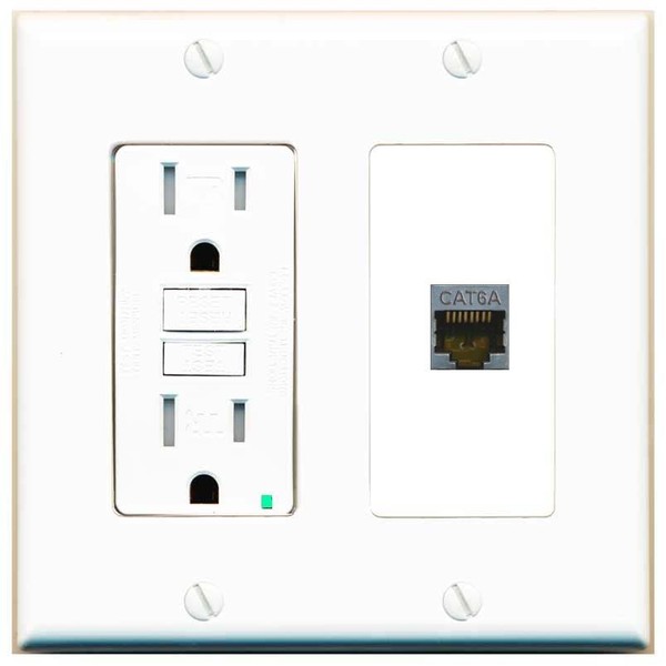 RiteAV CAT6A Wall Plate with GFCI Power Outlet [White]