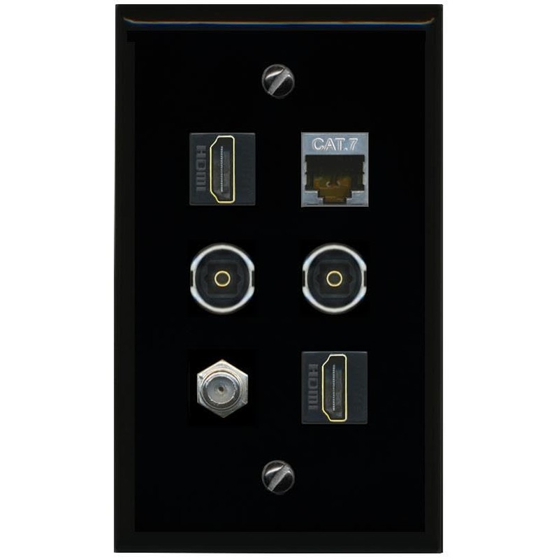 RiteAV CAT7 Coax 2 HDMI 2 TOSLINK Flat/Solid Wall Plate [Black]