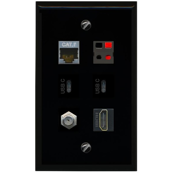 RiteAV CAT7 Coax HDMI Speaker 2 USBC Flat/Solid Wall Plate [Black]