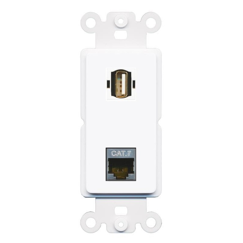 RiteAV CAT7 USB2 Rocker Insert Wall Plate Module [White]