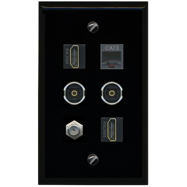 RiteAV Coax 2 HDMI Phone 2 TOSLINK Flat/Solid Wall Plate [Black]