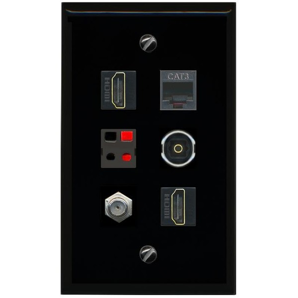 RiteAV Coax 2 HDMI Phone Speaker TOSLINK Flat/Solid Wall Plate [Black]