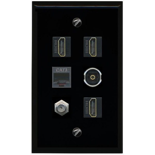 RiteAV Coax 3 HDMI Phone TOSLINK Flat/Solid Wall Plate [Black]