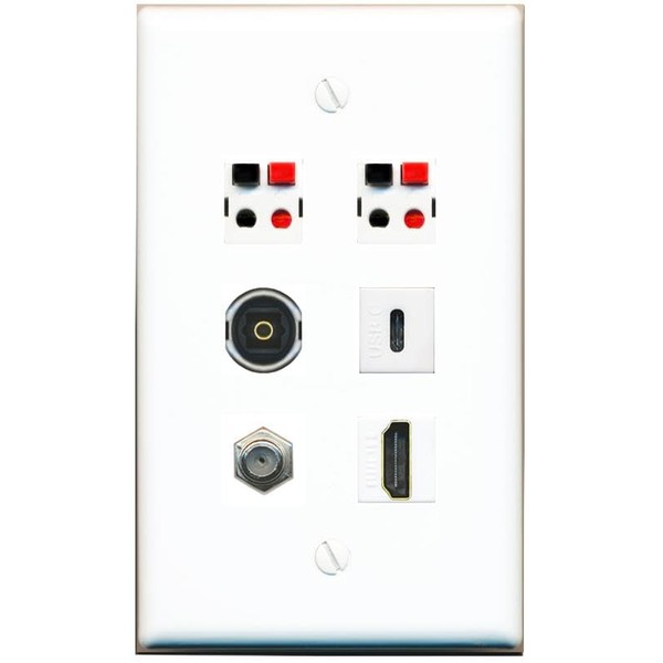 RiteAV Coax HDMI 2 Speaker TOSLINK USBC Flat/Solid Wall Plate [White]