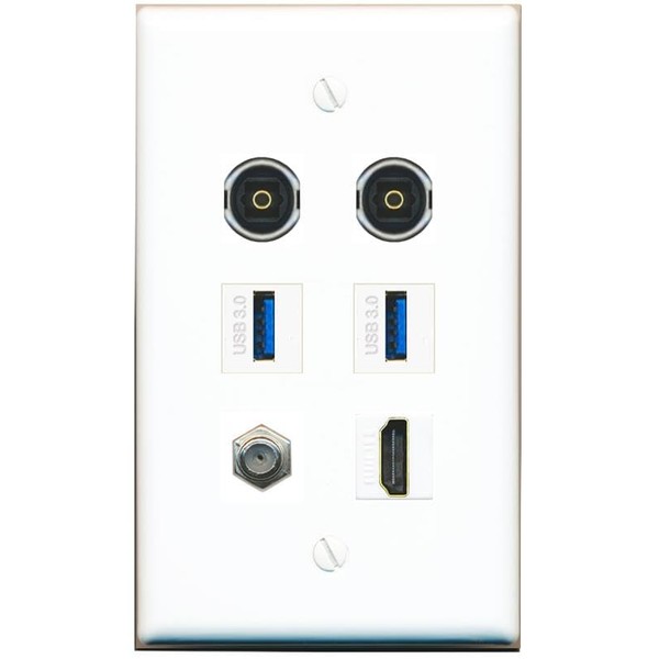 RiteAV Coax HDMI 2 TOSLINK 2 USB-3 Flat/Solid Wall Plate [White]