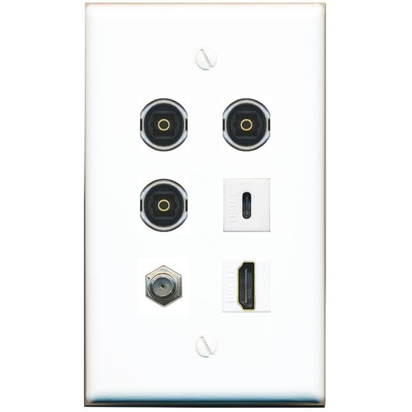 RiteAV Coax HDMI 3 TOSLINK USBC Flat/Solid Wall Plate [White]
