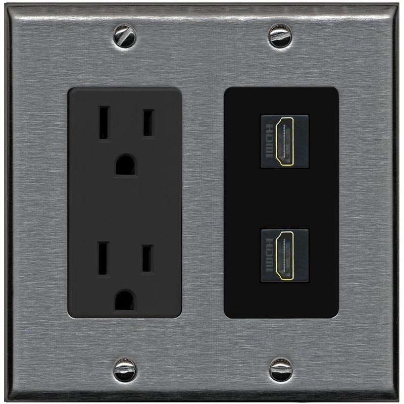 RiteAV HDMI Wall Plate 2 Port - Outlet [Stainless/Black]