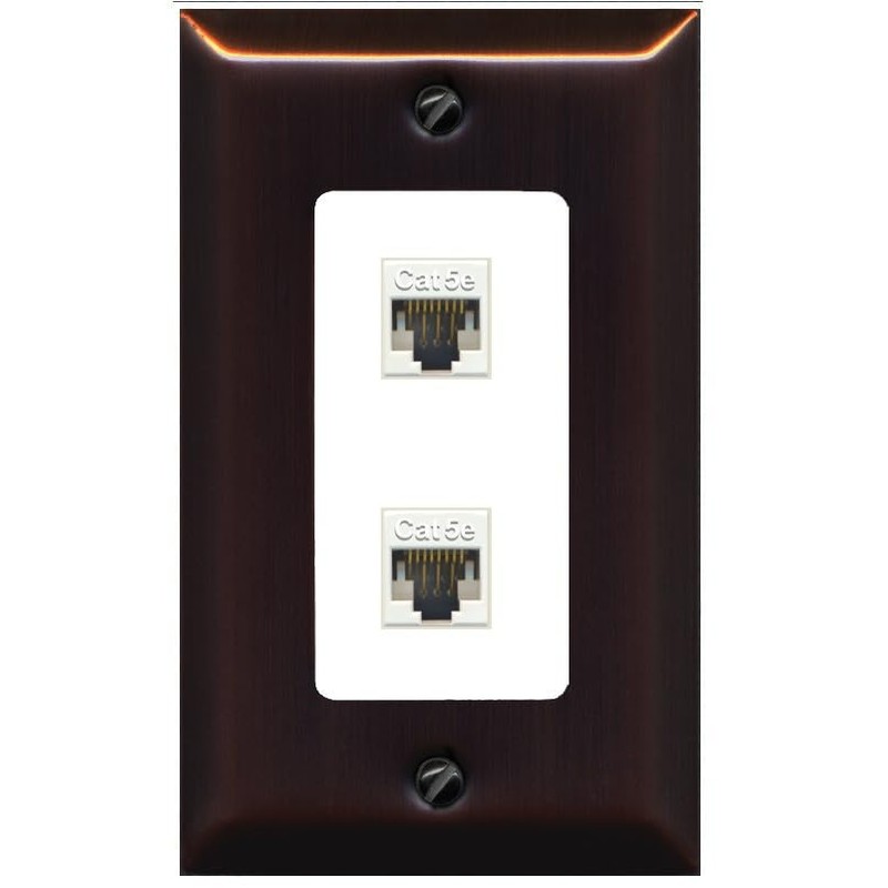 RiteAV Decorative 2 Port Cat5e Ethernet Wall Plate - 1 Gang Bronze/White