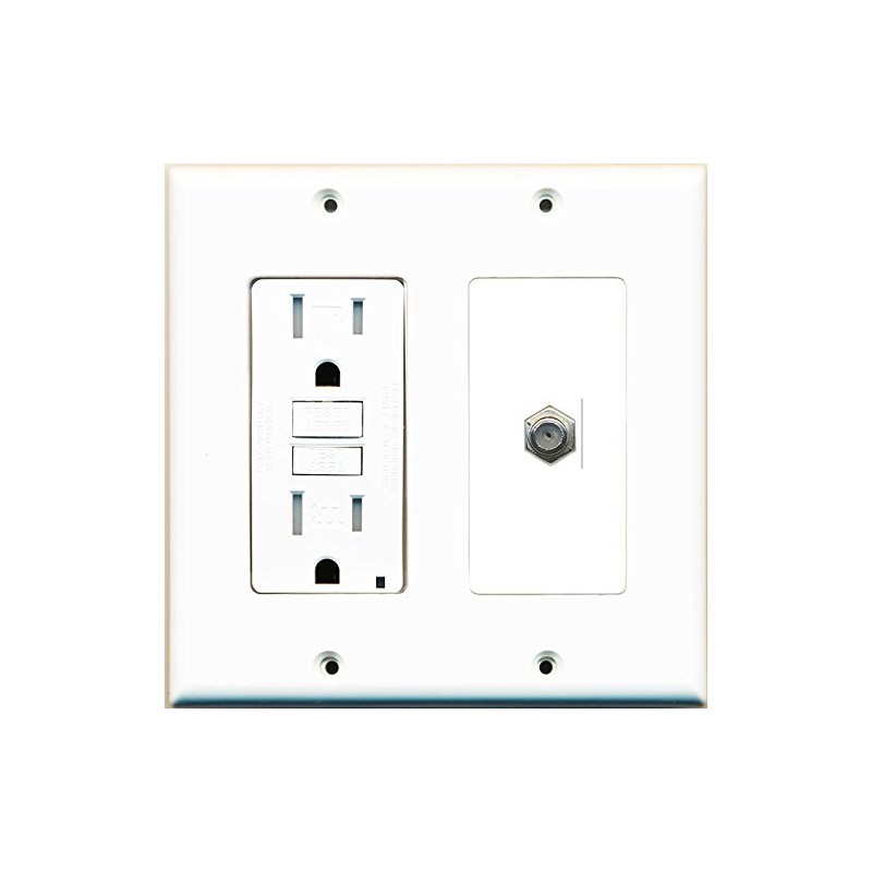 RiteAV GFCI 15 Amp Power Outlet and Coax Cable TV Wall Plate White