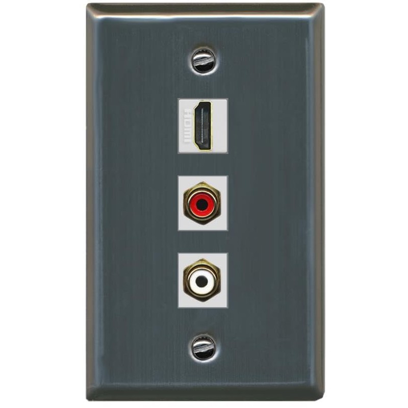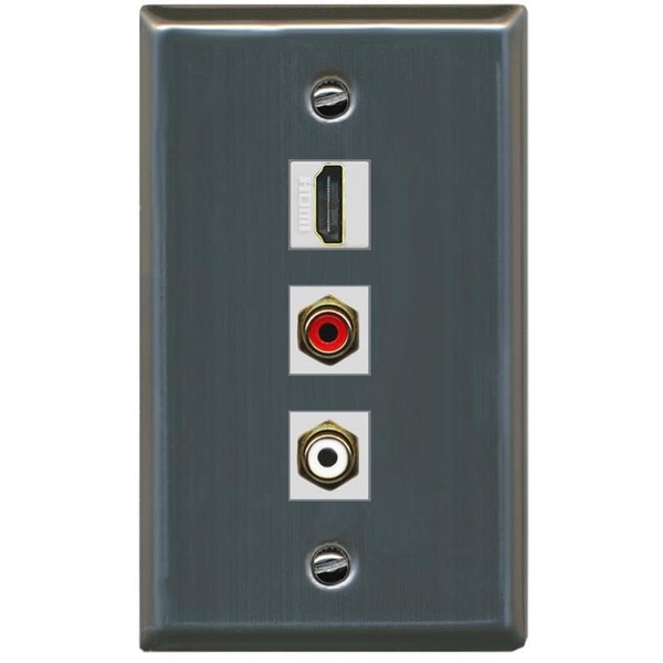 RiteAV HDMI and 2 RCA (Red/White) Wall Plate - Flat [Stainless Steel]