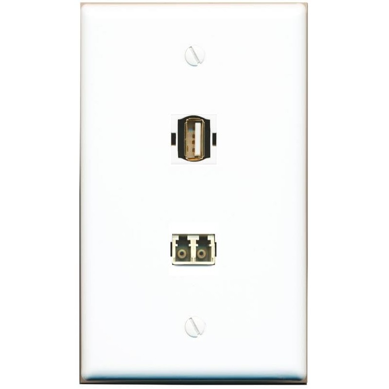RiteAV LC Multimode Fiber Duplex USB2 Wall Plate Flat/Solid [White]