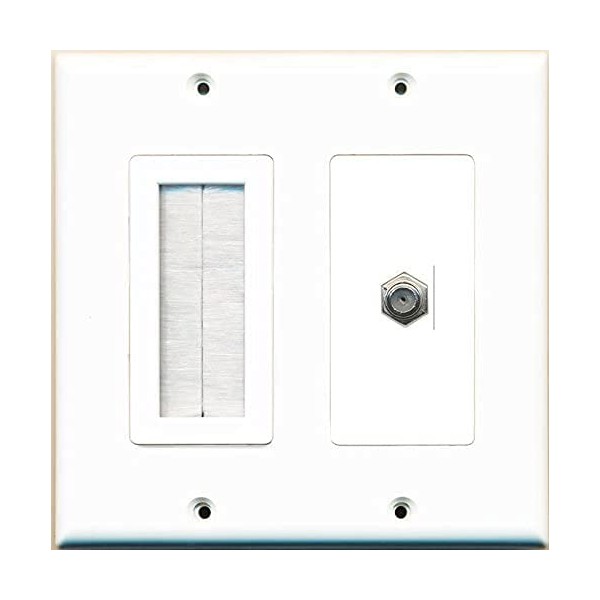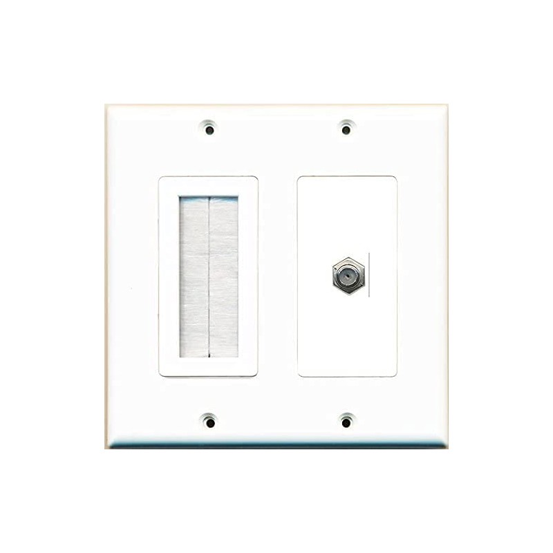 RiteAV Mesh Brush Coax Cable TV Wall Plate Dual 2 Gang Decorative White