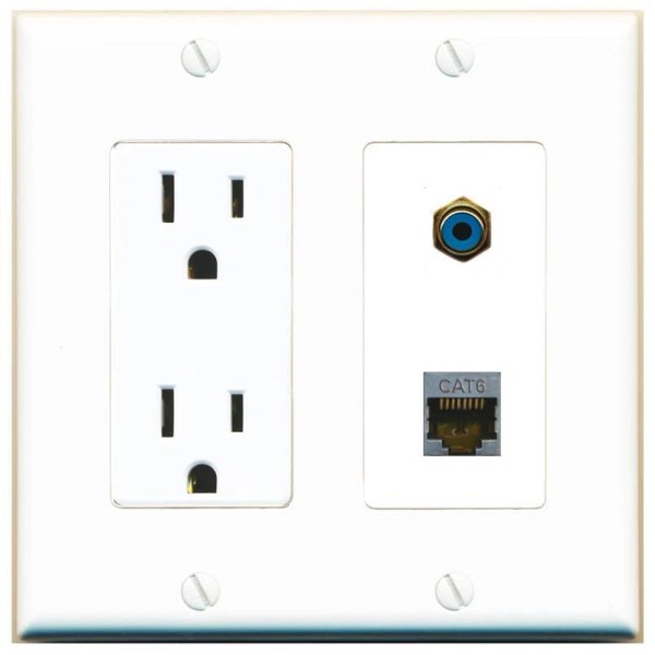 RiteAV Power Outlet and CAT6-SHIELDED RCA-BLUE Wall Plate Decorative [White]