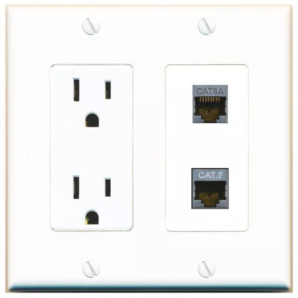 RiteAV Power Outlet and CAT6A CAT7 Wall Plate Decorative [White]