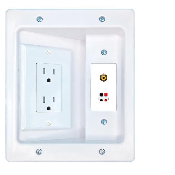 RiteAV RCA-Yellow Speaker Recessed Wall Plate Cable Concealer Management Kit with Power Outlet Hides Cords and Cables
