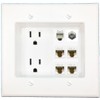 RiteAV Recessed Duplex Receptacle Outlet 4 CAT6 Coax Phone Wall Plate White