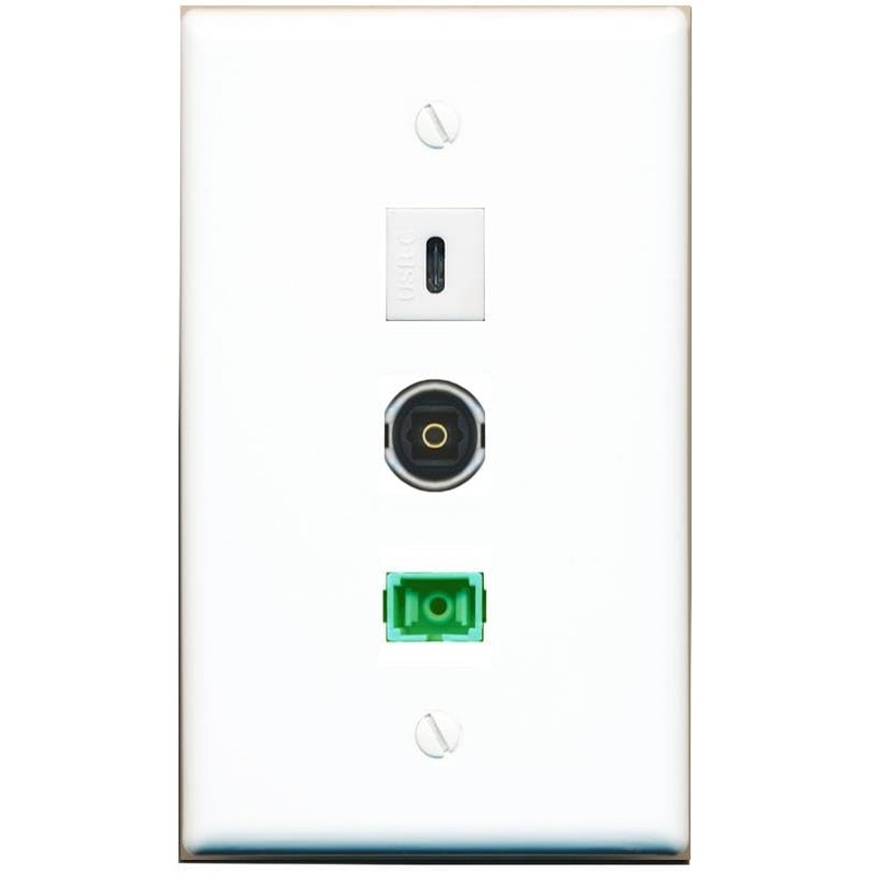 RiteAV - SC-APC Singlemode Simplex TOSLINK USBC Wall Plate Flat White