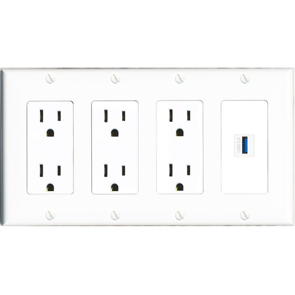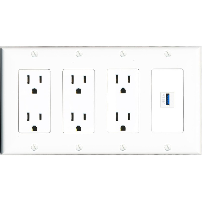 RiteAV USB-3 Wall Plate 4 Gang with 3 x 15A Duplex Power Outlets