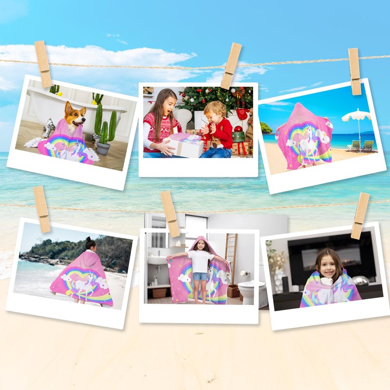 Ritiga Unicorn Bath Towels for Kids Ages 4-8 Beach Towels Mermaid Pink Red Pool Travel Swimming Bath Shower Towel for Girl Kids Beach Towel for Girls Polyester Hooded Towel
