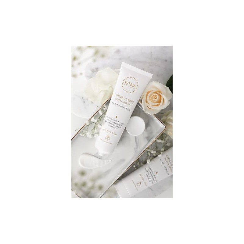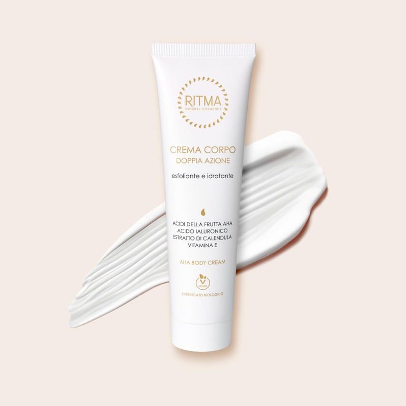 Ritma Natural Cosmetics | Körpercreme mit doppelter Wirkung, Peeling, feuchtigkeitsspendend, 150 ml, mit AHA-Säure und Hyaluronsäure