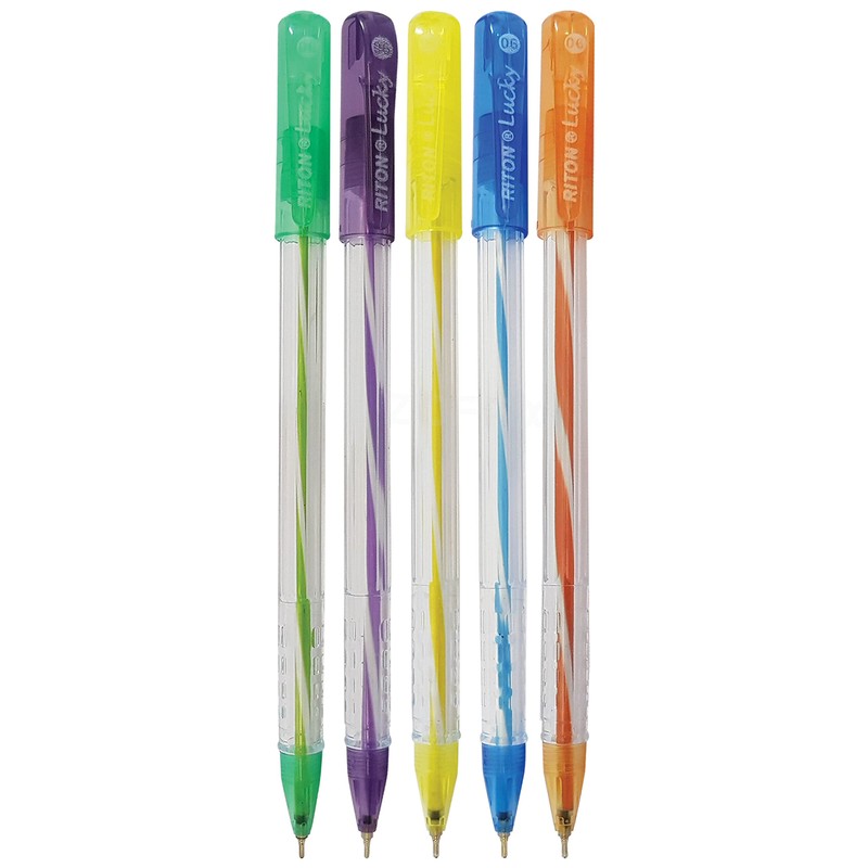RITON Lucky 5 x 0.6mm Soft Needle Tip BLUE Ballpoint Pens Long Smooth Writing