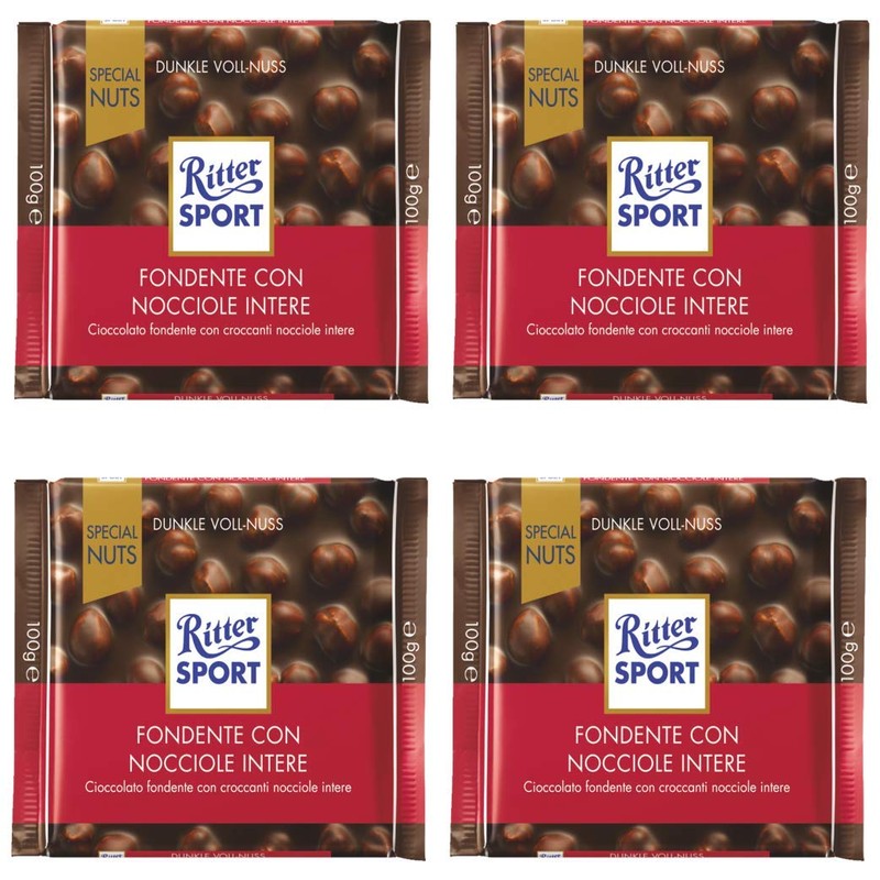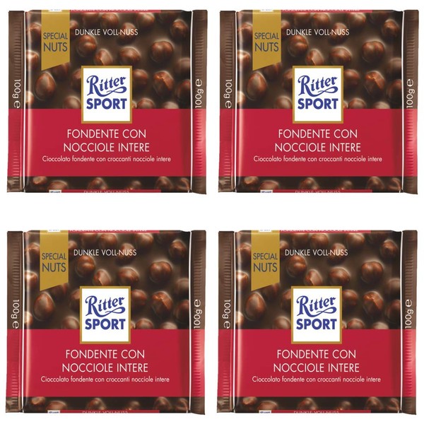 Ritter Sport Dark chocolate with Whole Hazelnuts 3.5-Ounce/100g Bars, pack of 4