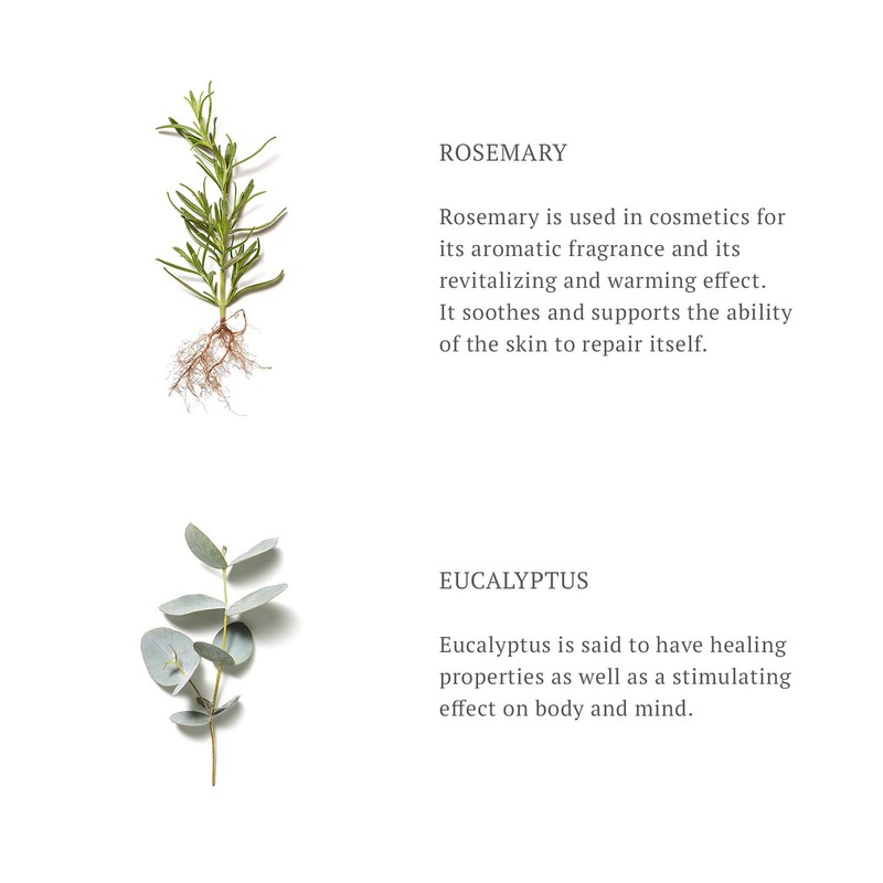 - Combines the aromatic and invigorating properties of refreshing eucalyptus and rosemary
