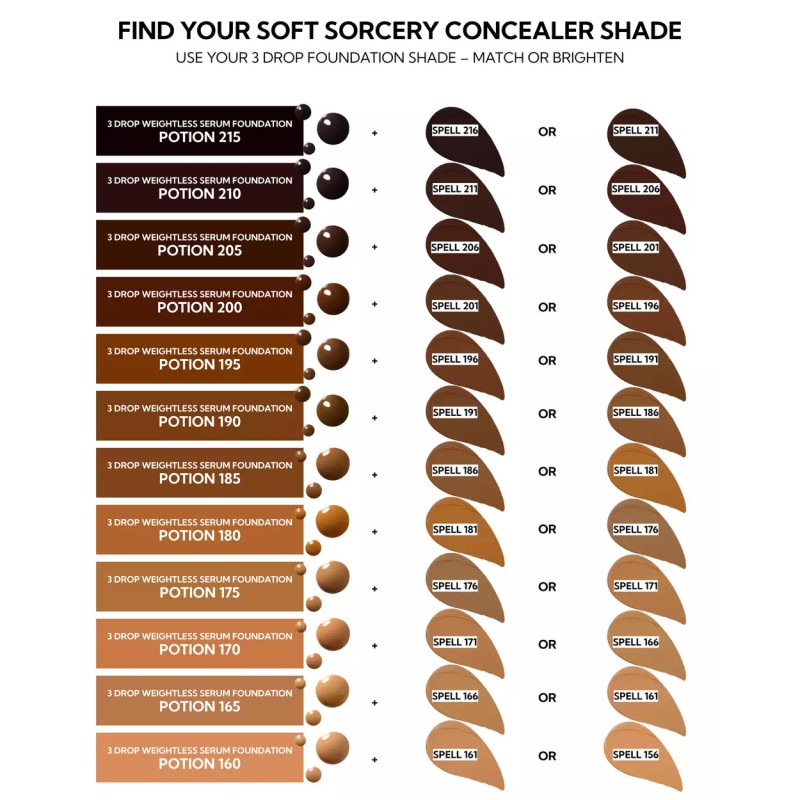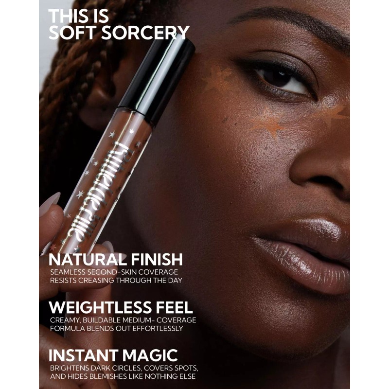 SOFT SORCERY Weightless Serum Concealer instantly brightens dark circles, covers spots, and hides blemishes as if by magic. This impossibly lightweight formula applies with an opulently creamy texture, blends smoothly, and self-sets to a natural, second-skin finish that resists creasing throughout the day. With its extraordinary pigmentation, a little goes a long way; start with a light touch to achieve buildable medium coverage, and then layer to reach any coverage level you desire.