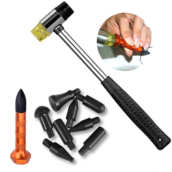 - Kit includes: 1 rubber hammer (hammer), 9 knockdown pen-shaped sticks, metal body size: 2.6 inches (66 mm); Tip size: 1.0 inch (26 mm); 9 types of tips that can repair different dents and convexes.