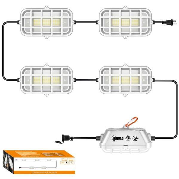 RIUVAO 50ft LED Construction String Lights,Super Bright 150W 15000LM Waterpro...