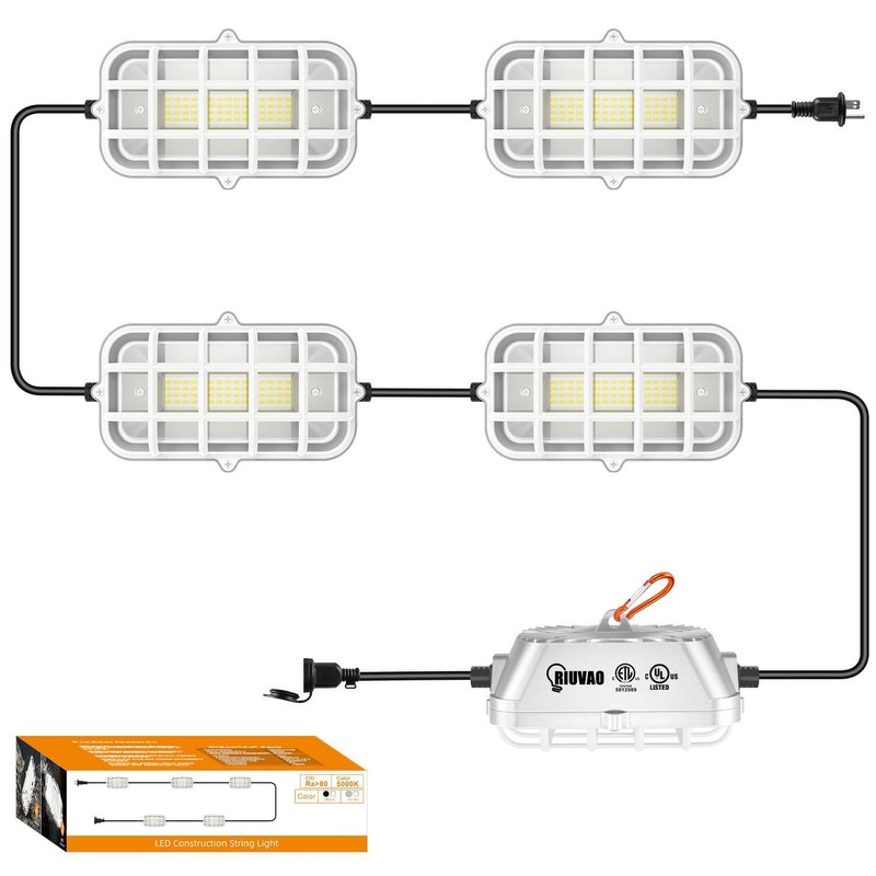 RIUVAO 50ft LED Construction String Lights,Super Bright 150W 15000LM Waterproof IP67 Led String Work Lights, Construction Temporary Lights (Upgrad 50ft-5lights).