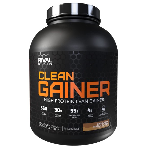 RIVAL NUTRITION Clean Gainer Protein Powder – 5LB Chocolate Peanut Butter – High Protein Lean Mass & Weight Gainer | 560 Calories, 30g Protein, 99g Multi-Source Carbs – 15 Servings