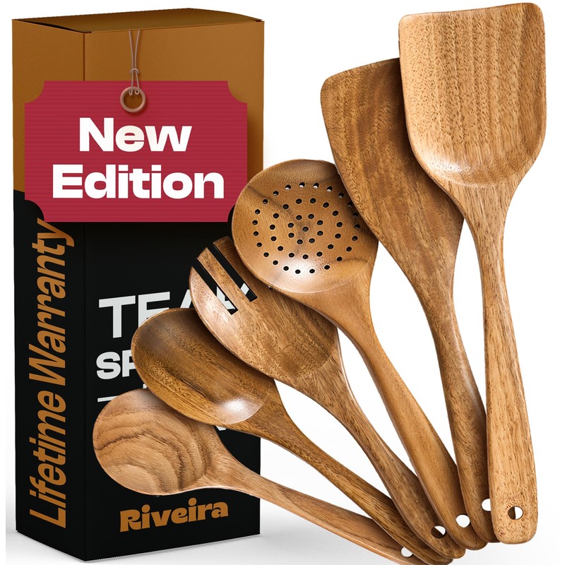 Riveira's 6-Piece Kitchen Essentials - Wooden Spoons for Cooking and Comprehensive Cooking Utensils Set