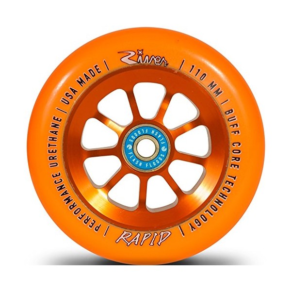 River Glide 110 mm Stunt Scooter Wheel Including Flash Ball Bearings + Fantic26 Sticker (Rapid Orange)