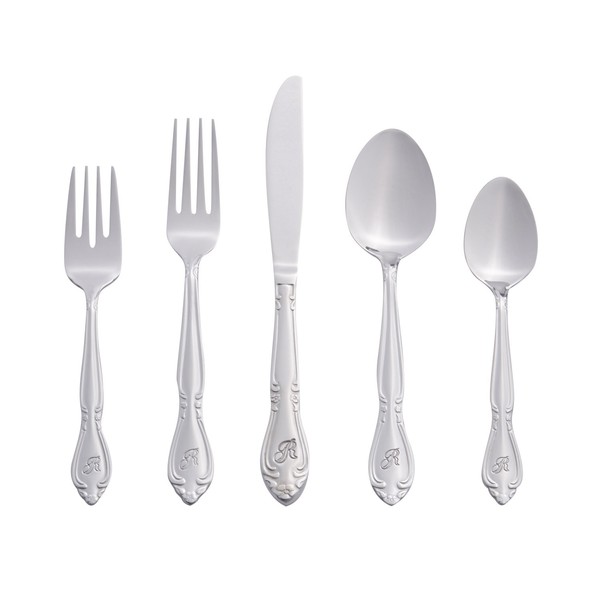 RiverRidge 5417-843-R Rose 46 Piece Monogrammed Flatware Set, Letter R, No size, Silver