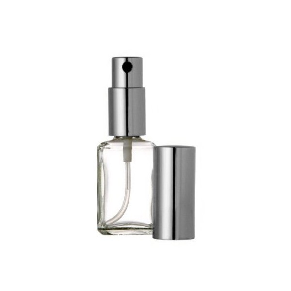 New, high quality, **Riverrun** perfume atomizer, with sturdy, square glass bottle and attractive silver metal sprayer and cap. Provides a fine mist spray. A funnel and transfer pipettes are included, making it easy to fill the bottle. Decant your favorite fragrance in style. Capacity: 15 ml ~ .50 oz. Height: 80 mm ~ 3.15 in. Width: 27 mm ~ 1.06 in.