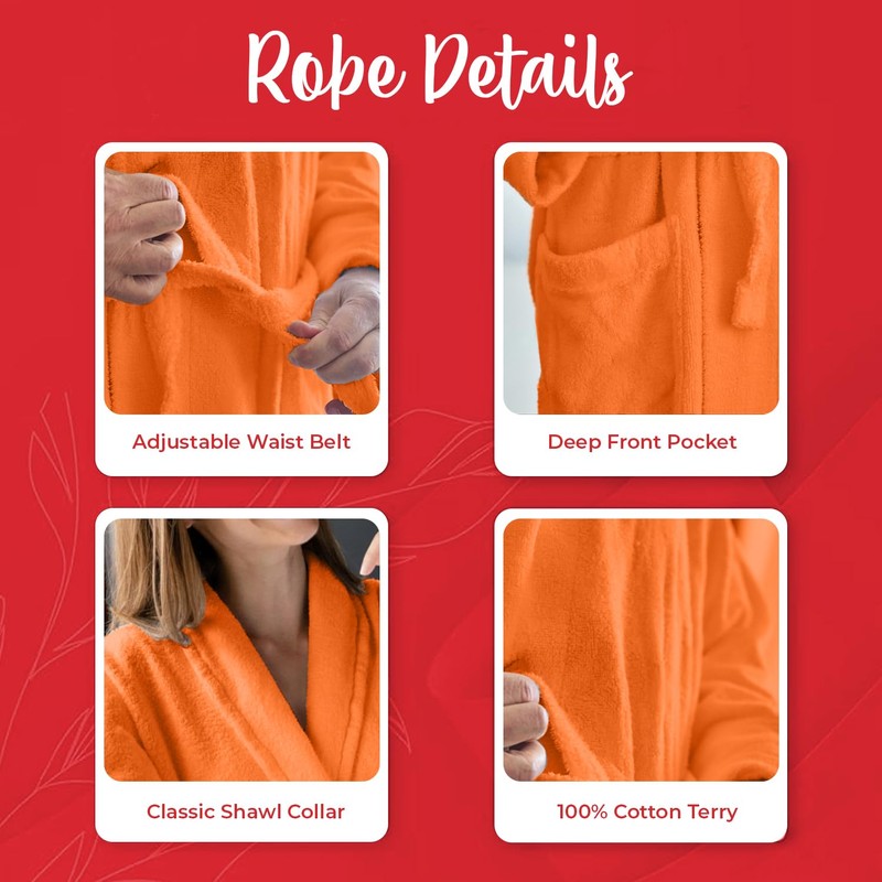 - ✨𝐔𝐧𝐢𝐬𝐞𝐱 𝐅𝐢𝐭 𝐟𝐨𝐫 𝐖𝐨𝐦𝐞𝐧 & 𝐌𝐞𝐧: Designed as a one-size, gender-neutral robe, this orange bathrobe fits both men and women comfortably, offering versatility for all users.