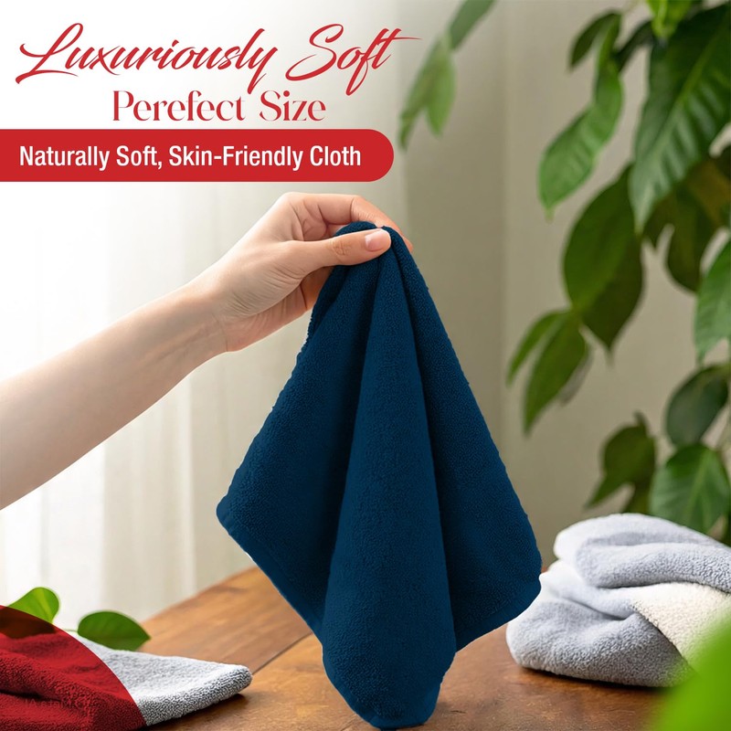 RIVERSIDE 12 Pack Washcloths Set โ 100% Ring-Spun Cotton Face Cloths โ Super Soft, Highly Absorbent, Durable โ Multipurpose Towels for Bathroom, Spa, Gym - Blue Opal