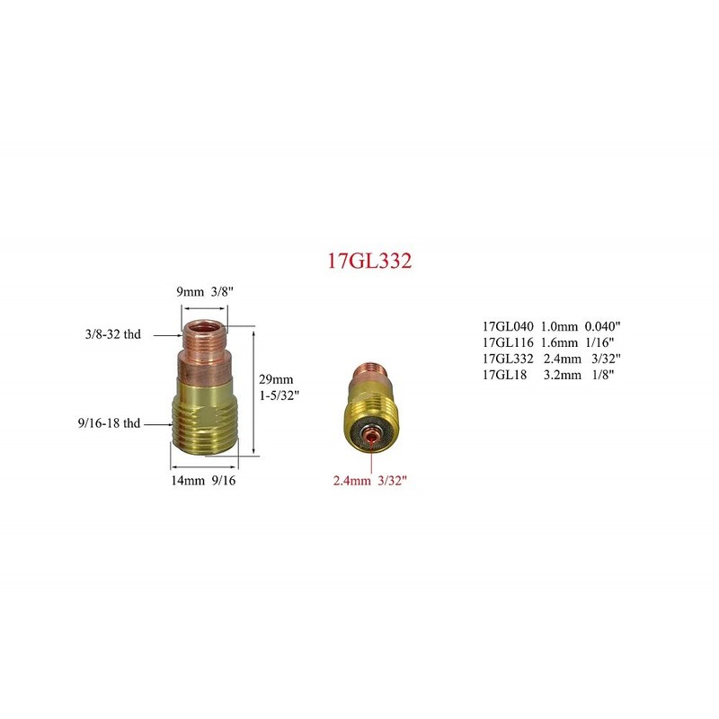 RIVERWELD TIG Stubby-Gaslinse 17GL332 2,4 mm Fit DB SR WP 17 18 26 WIG-Schwei...