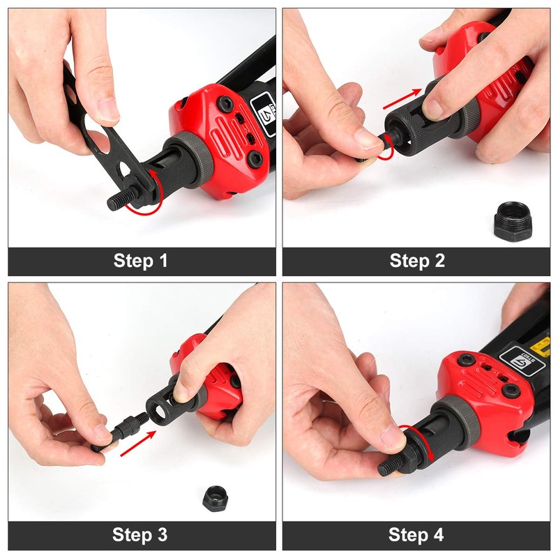 - The accessories kit includes 6-32, 8-32, 10-32 mandrels and 10pcs of rivet nuts of each size.
