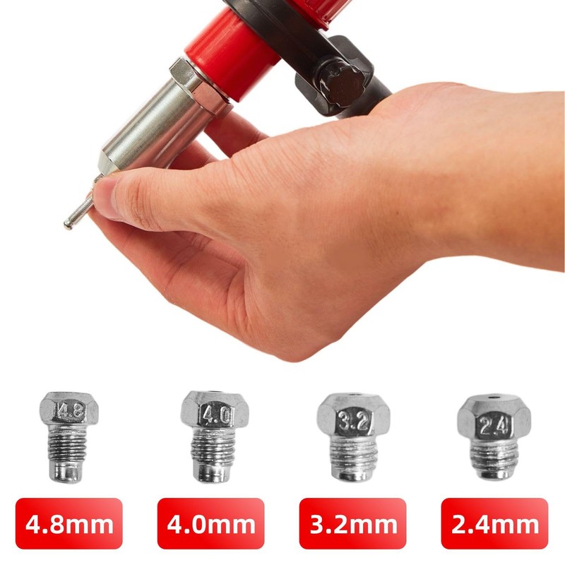 - Compatible with 4 rivets in one tool: 0.09 inch (2.4 mm), 0.1 inch (3.2 mm), 0.1 inch (4.0 mm), 0.19 inch (4.8 mm). Adapts to a variety of working environments and requirements