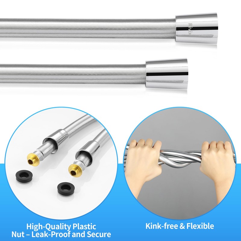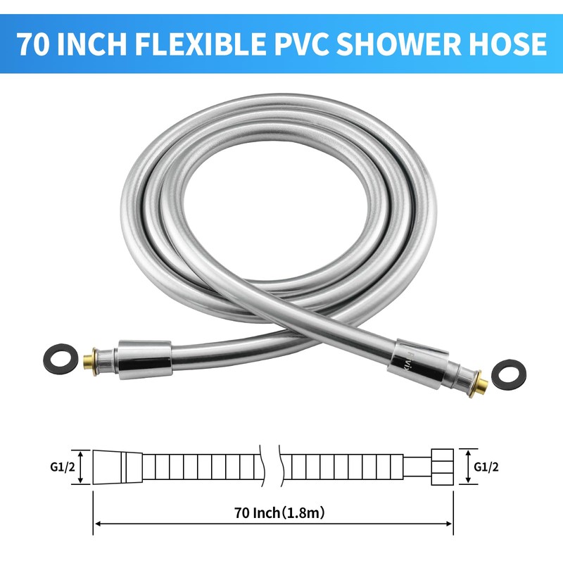 - PREMIUM CONSTRUCTION:Made of stainless steel with a chrome finish, the shower hose has solid brass connectors for added strength. It resists corrosion and fading. The inner tube is premium PVC, designed to withstand high pressure and temperatures