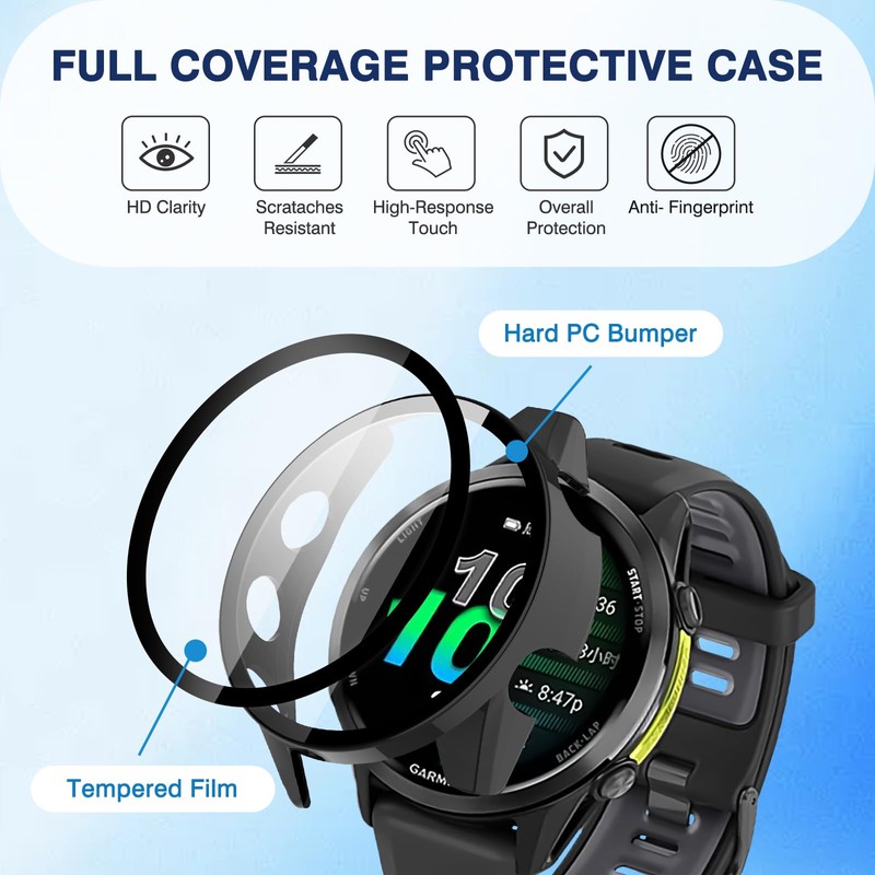 - Total Protection: Our Garmin screen protector case is made of hard PC + Tempered Film material, which covers the entire front and curved sides of the watch to provide all-around protection for your watch.The PC material is tougher, more durable, and provides better protection from everyday wear and tear, scratches, and impacts